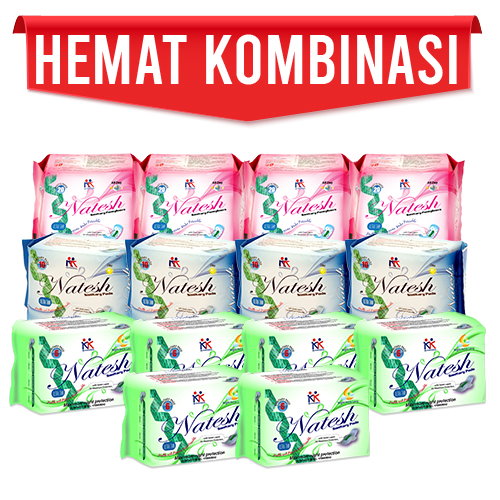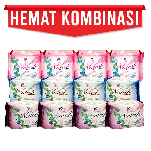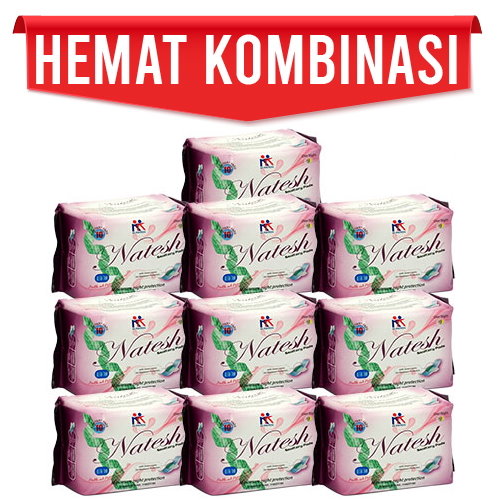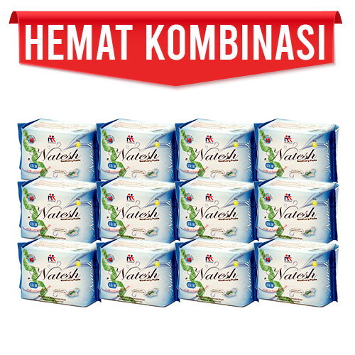 7. Daya serap pembalut Natesh 3-5 kali (SAP dari jepang) dari pembalut biasa, sehingga tidak mudah bocor. 8. Tidak menimbulkan panas, lembab, basah, iritasi dan gatal pada kulit, cocok untuk kulit sensitif/mudah alergi. 9. Pola penempatan lem diatur sedemikian rupa dan seminim mungkin, sehingga tidak menggganggu sirkulasi udara.